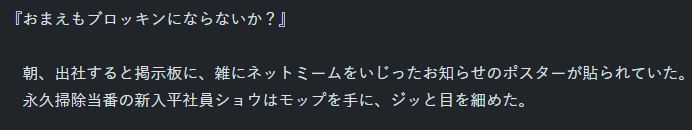 ショウさんのブラック企業試用期間終了そして社内名物お笑いコンビ結成へ…みたいなのを、のこり1/3くらいで書きたくて