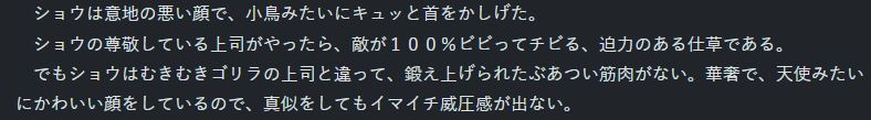 ショウさんのことめっちゃ好きーみたいな感じで書いてるのは、中の人(動力源)がショウさんのことめっちゃ好きだからです