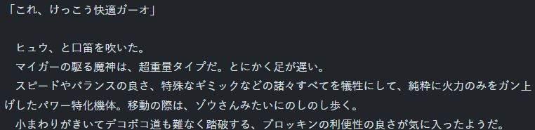 天翔重號に乗ったマイショウさんも、ほかのヤカラがメカ乗ったとたん狂暴になってるように見える…みたいに、暴力みがマシマシになってるじゃないかな、とか