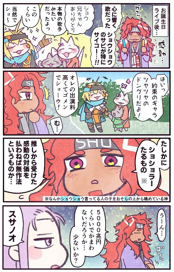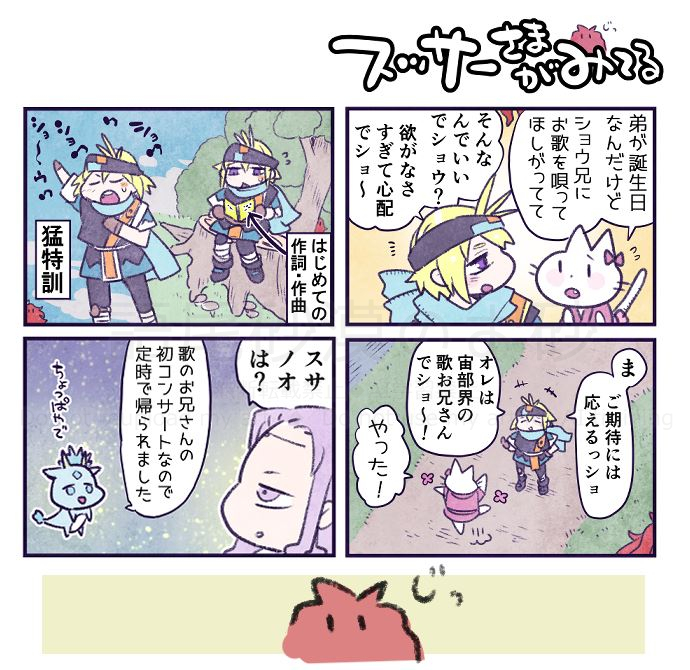 スッサーがエキゾチックミステリアスなお顔と肌色をしているのはこれのせいか?とか、スッサーをあらわす星は「天刑星」っていうのか…かっこいいな…とか、クシナダさんお話によってはそんなことなってんの?ヤマタノオロチ→クシナダさんでは、それって龍(カケルくん)→ショウさんってことで?えっ?NTR?でも報われないんだなキッズの甘くてほろ苦くて淡く溶けちゃう初恋か…とか、色々妄想がふくらむエピソードがのってて、とても盛り上がっております。ではまたのちほど。