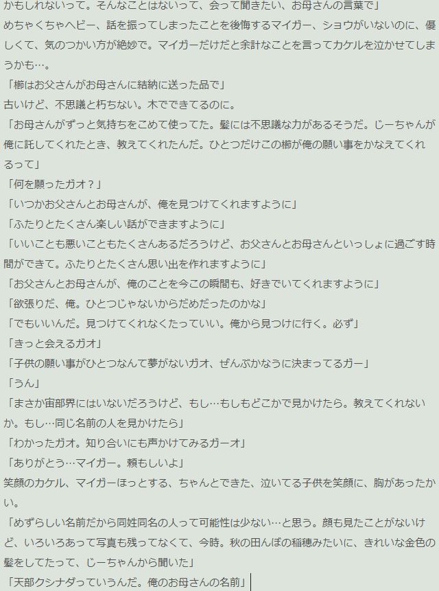 のちほど蛇足部分も、別ページであげられたらと。