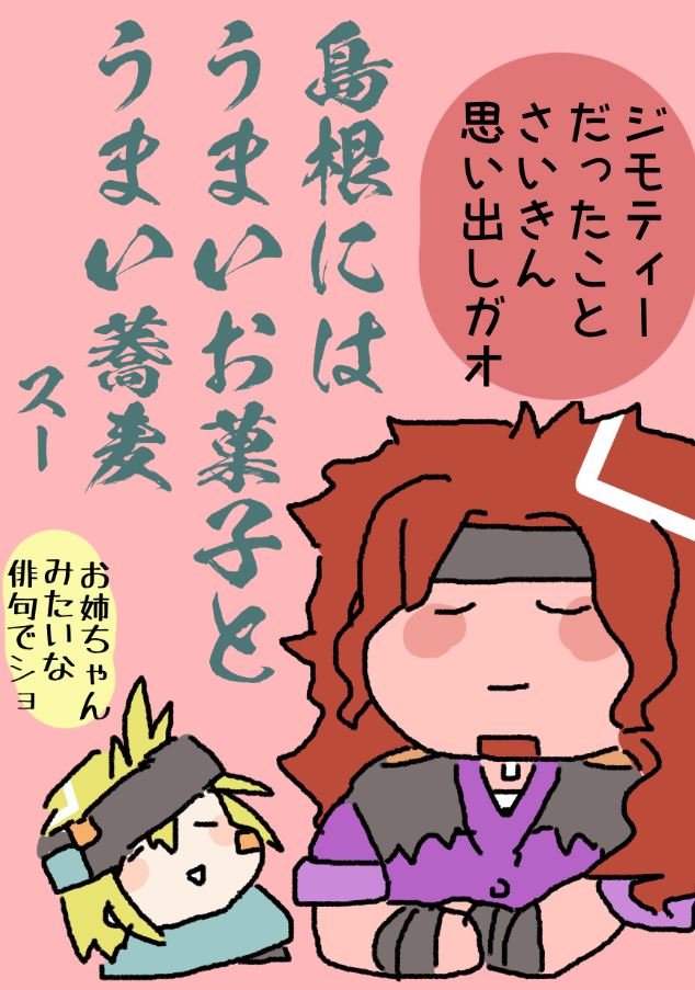 そろそろ先月買ってきたお菓子の群れが全滅しそうです。出雲人(いずもんちゅ)ガーよ、地元のお土産ぜんぶおいしいですぞ。