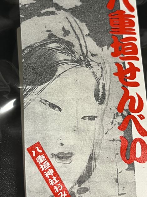 つぎは八重垣神社さんの八重垣せんべいを開けました。このタイプのおせんべい、みかけるとすぐ買っちゃう。