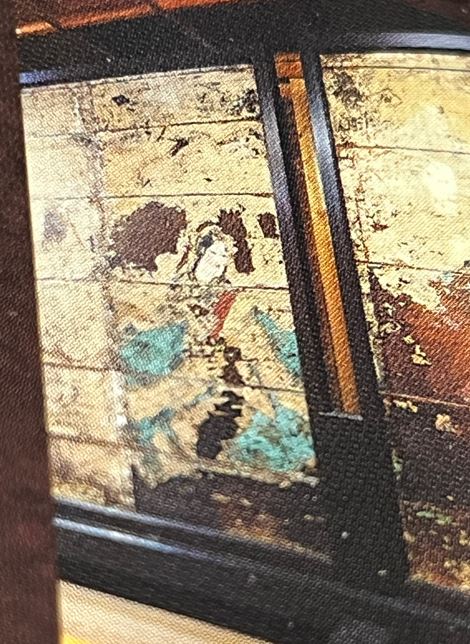 八重垣さん宝物殿の、そのもの青き衣を身にまとった日本最古のクシナダさん壁画。平安時代の宮廷画家・巨勢金岡さんの手になるもの。