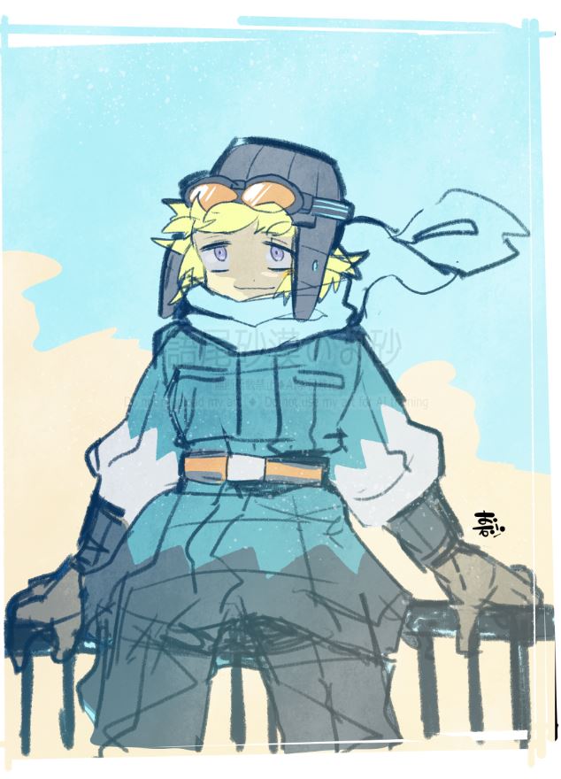 マフラー、ゴーグル(バンダナ)、スカートみたいなコートのひらみ、などなど