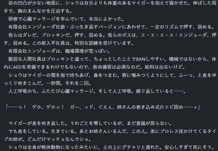 毎日つぎたしているものなんですけど、次らへんからショウさんがちょっとかわいそうかも…がしばらく続くんじゃないかなと思うので、読んでくださってる方がもしいらしたら、何卒ご自衛くださいましね