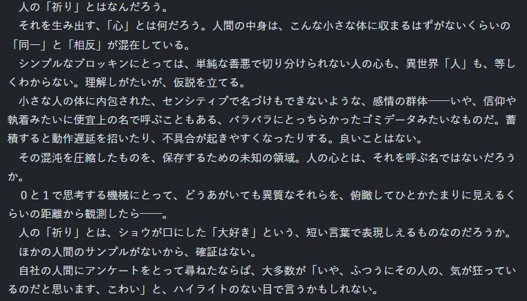 気を抜くとすぐ長くなってしまって、10万字をこえてしまうのか、それまでには終わるのか、よくわかんなくなってきました